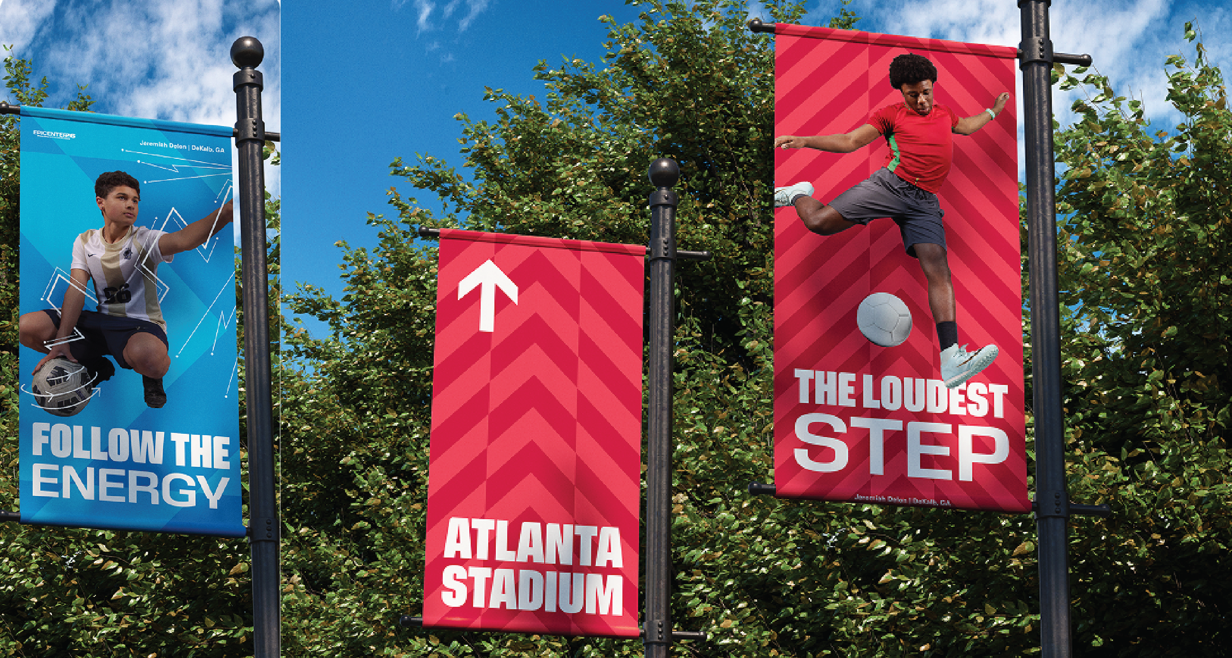 Centered around the theme “Epicenter,” the concept captures the surging energy of hundreds of thousands of fans moving through downtown Atlanta. Working across multiple creative departments, we brought the vision to life through immersive activations